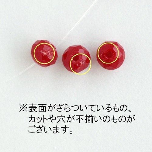 こちらのビーズは製造工程上、不純物、表面のざらつき、細かなキズやカケ、カットや穴が不揃いなものが含まれる場合がございます。
