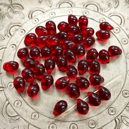 チェコビーズ ドロップ5X7mm シャム 40コ GB3222
